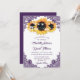 Elegantes invitaciones de casamiento de girasol rústico violeta ideal para un campo rústico morado, jardín, patio trasero o fiesta de bodas de granero inspirada en flores de girasol. Artículos de juego disponibles para complementar estas invitaciones a bodas de moda rústica púrpura.