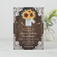 Invitación Boda del girasol Rustic Wood Lace Mason Jar