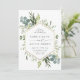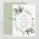 Esta elegante invitación a la boda incluye eucalipto de acuarela pintada, hojas verdes, flores con un marco falso hexágono geométrico de oro. Para una personalización más avanzada de este diseño, haga clic en el enlace "Personalizar más adelante". También están disponibles los elementos coincidentes.