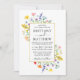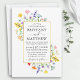 La Invitación a la Boda de Flor Silvestre de color Acuarela Moderno incluye delicados amarillos, rosados, melocotones, azul polvoriento, verde salvia, violeta, rojo y naranja, adornos, hojas de eucalipto y otros hermosos paisajes botánicos sobre un marco dorado. Elegante guión de caligrafía.