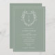 ¿Estás buscando un giro moderno en una invitación clásica a la boda? ¡Entonces no hay más que ver nuestra invitación a la boda Escudo del Monograma Verde Masculino Clásico! Esta bonita invitación está diseñada con un escudo de dibujos a mano adornado con flores silvestres y mariposas. Presenta sus iniciales de monograma en una fuente elegante, y se termina con caligrafía escrita a mano. Se trata de un nuevo diseño, por lo que póngase en contacto con el diseñador para obtener los productos correspondientes para completar la suite, O para las variaciones de color de este diseño. Copyright Elegant Invita, todos los derechos reservados.