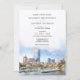 Disfrute de un día especial en la elegante invitación a bodas de Boston Skyline, la invitación perfecta para las parejas que atan el nudo en la histórica y pintoresca ciudad de Boston. Esta atractiva invitación cuenta con una acuarela que representa el icónico paisaje de Boston, con su mezcla de arquitectura tradicional y rascacielos modernos, creando un impresionante telón de fondo para sus detalles bodas. La invitación, ambientada con un fondo suave y ventilado, muestra los detalles del lugar para la celebración de la novia y el novio. El elegante guión y la tipografía clara se complementan con el sereno azul del paseo marítimo y los tonos cálidos de la ciudad, invitando a los huéspedes a un boda que promete ser tan vibrante y memorable como el propio Boston.