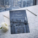 Invitación a una boda temática en Nueva York, este diseño presenta una representación azul del horizonte de la ciudad de Nueva York. Con puntos de referencia notables y plantillas fáciles de usar, realice su pedido hoy mismo.