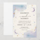 Una acuarela de ensueño lavada de blues y morado evoca un mágico cielo nocturno. Las estrellas del torbellino y las lunas de media luna le dan un toque de fantasía a este diseño etéreo. Perfecto para un evento romántico y encantador.