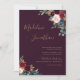 Diseño con acuarela floral de color burdeos rojo y azul marino con tipografía de escritura dorada elegante. Fondo de ciruela oscura que se adapta perfectamente a la Boda temática de tono jewel. Consulte la colección para ver el elemento coincidente.