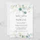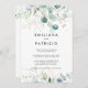 Este rústico eucalipto dorado y la invitación a la boda es perfecta para una elegante boda. Este diseño artístico presenta una floración dorada a mano y eucaliptos de color agua, un follaje verde inspirador de la belleza natural. Guarde el papel incluyendo más detalles en la parte posterior de la invitación en lugar de en una tarjeta separada.