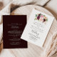 Esta rústica y floral invitación a la boda es perfecta para un simple boda. El diseño presenta flores y follaje pintados a mano hermosas y coloridas, elegantemente dispuestos en bonitos ramos. Guarde el papel incluyendo más detalles en la parte posterior de la invitación en lugar de en una tarjeta separada.