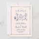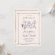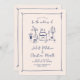 Esta invitación a la boda se basa en la tendencia popular, a mano, que ofrece comida y bebidas de estilo francés o italiano en un estilo caprichoso, garabato y garabato. Este diseño es ideal para un boda relajado e informal en un jardín. Cuenta con encantadores ilustraciones hechos a mano con un jarrón de flores, una botella de champán, pasteles bodas, portavelas y vasos de vino.