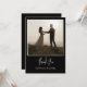 Expresar su más sincera gratitud con este elegante agradecimiento de boda, diseñado en negro rico con una sola foto preciada para capturar la magia de su día. Minimalista pero profundamente personal, este diseño digital combina la sofisticación con la calidez, perfecto para las parejas que quieren decir "gracias" con estilo y sinceridad. Personalizable total, este agradecimiento digital te permite añadir tu propio mensaje y foto. Asegúrese de hacer clic en el menú desplegable para seleccionar "Descarga instantánea"