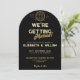 Invitación Boda Disco Groovy Todo en Uno Negro y Dorado