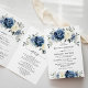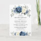 Invitación a la boda con flores de un azul oscuro, con un elegante ramo de azul marino, azul real, blanco , dorado, marfil de champán, rosa de color rubor , flores de ranunculus y hojas de eucalipto verde salado y elegante ramo de acuarela. Comuníquese conmigo para obtener ayuda sobre la personalización o si necesita cualquier otro producto con este diseño.