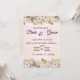 Celebre su día especial con esta impresionante invitación de boda Boho-Chic, que presenta hermosas rosas blush de acuarela combinadas con hojas de palma tropical secas. Los tonos cálidos terrosos y el diseño elegante crean un ambiente moderno pero rústico, perfecto para bodas de verano, jardín o playa. Cada detalle es una plantilla totalmente editable, lo que le permite personalizar sus nombres y detalles de la boda con facilidad."