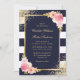 Invitación Boda dorado blanco azul de la marina floral rosa d