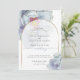 INVITACIÓN DE LA boda | El texto moderno encaja bien dentro de este hermoso marco de arco de borde dorado puro que muestra la flor de peones de fantasía subyacente en azul y lila polvorientos y con un borde de oro - el dorso es color de coordinación - obras de arte originales © por WhimsicalArtwork™.