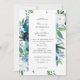 Envía hermosas invitaciones de boda florales azules polvorientas y blancas. Elija entre un nombre cursivo o impreso.