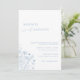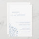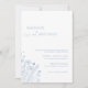 Invitación nupcial azul polvorienta moderna y minimalista con caligrafía escrita a mano y sofisticado diseño de flor silvestre y mariposa.