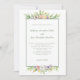 La elegante invitación de boda presenta un arreglo floral de acuarela chic en durazno, lavanda, amarillo, rosa y blanco, rodeado de hojas verdes suaves. Tres mariposas coloridas añaden un toque de fantasía al diseño. La parte delantera de la tarjeta tiene un fondo blanco que hace que las flores y las mariposas resalten. Puede personalizar la tarjeta con sus propios detalles en una fuente verde salvia que coincide con el follaje. El estilo de fuente es una mezcla de moderno y clásico, con una letra moderna y un guión elegante. La parte trasera de la tarjeta también es blanca, lo que le da una apariencia limpia y fresca. Para personalizar su invitación, simplemente reemplace los detalles del modelo con los suyos y deje espacio entre los párrafos como en el ejemplo. Si tiene alguna pregunta, por favor use el botón de mensaje o envíe un correo electrónico a invitationsuites@gmail.com