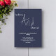 Esta elegante invitación a la boda azul marino es perfecta para un boda moderno. el diseño es sencillo, con una elegante caligrafía blanca sobre un fondo azul.