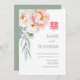 Elegante Chino de Boda de Doble Felicidad Invitan con Eucaliptos Peonies. Tradicional y también moderna. Tiene la opción de agregar la información de detalles en la parte posterior. Es opcional. Si desea dejar la opción en blanco, sólo tiene que eliminar el texto en el cuadro de personalización.