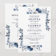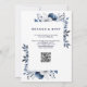 Invitación Boda elegante con código QR floral azul marino y b