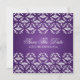Diseño elegante de "Save The Date" de boda con romántico damasco vintage con efecto púrpura, y nombres personalizados, texto de fecha y monograma decorativo. Impresiona a tu familia y amigos con este diseño moderno y elegante. ¡Totalmente personalizable! Fácil de usar y fácil de personalizar. ¡Ordena hoy!