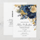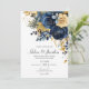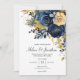 Invitación Boda elegante de jardín azul marino floral dorado