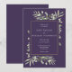 Con hojas delicadas de acuarela sobre un fondo morado elegante. Esta invitación de boda botánica elegante se puede personalizar con la información de su día especial en tipografía moderna. Diseñado por Thisisnotme©