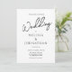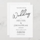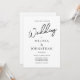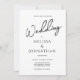 Una elegante invitación minimalista, simple y limpia a la boda con fondo blanco y letra de guión con la palabra boda. Este diseño se puede personalizar fácilmente con los detalles de su día especial.