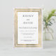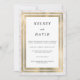 Un purpurina de mármol blanco y dorado marco geométrico elegante boda. Este diseño minimalista presenta un bonito diseño de borde de mármol purpurina dorado. Personalizar este diseño con su mensaje e información personalizada. Todos los diseños están impresos.