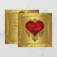 Rico damasco dorado con corazón rojo invitación de boda elegante de rojo y dorado.