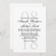 Un elegante diseño moderno, blanco y negro con un nombre de novia y novio en un elegante estilo de letra de caligrafía negro y detalles en un estilo de fuente serif clásico negro con una gran fecha en gris claro como fondo en blanco. Haga clic en el botón personalizar para personalizar el diseño eligiendo el color que desee.