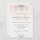 Crea la suite Boda perfecta con esta romántica y delicada invitación a la boda, con un elegante y elegante diseño floral, con una mezcla de ilustraciones de flores dibujadas a mano en gris oscuro y una disposición moderna sobre un fondo acuático rosa melocotón claro. Edite fácilmente los campos de plantilla para agregar los nombres de novias y novios y los detalles de fecha y ubicación en fuentes grises elegantes. La parte posterior de la tarjeta es el personalizable con el nombre de los cónyuges y la fecha del boda, complementado con un exquisito ilustracion botánico. Esta invitación a la boda forma parte de la colección "Peach & Grey Romantic Boda", con elementos coordinados para crear una suite boda única.