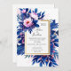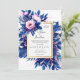 Invitación Boda elegante floral rosa azul cobalto Rubor