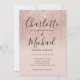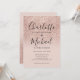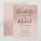 Con nombres de estilo de firma, esta elegante invitación de boda se puede personalizar con su información en tipografía chic en un fondo de glitter rosa dorado ombre. Diseñado por Thisisnotme©