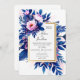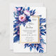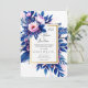 Invitación Boda elegante moderna de flor rosa azul cobalto