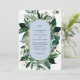 Invitación de boda de jardín botánico de greenery azul polvoriento con arco moderno. Hojas botánicas de acuarela, invitaciones de boda elegantes con tema de jardín.