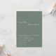 Invitación de boda elegante, atemporal, minimalista y clásica en verde salvia, con fuente tipográfica serif. Esta elegante invitación de boda es perfecta para parejas que buscan una invitación de boda de estilo simple y minimalista. Esta es también una invitación de estilo a doble cara. La parte trasera contiene detalles de la recepción e información de RSVP, que incluye un código QR que puede reemplazar con el suyo.
