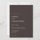 Crea tus propias invitaciones de boda personalizadas con todos los detalles de tu día especial en tipografía elegante simple en color marrón. Agrega una de tus fotos favoritas en el reverso.