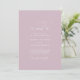 Esta encantadora y elegante invitación a una boda rosa lila en monograma es perfecta para un simple boda. El moderno diseño minimalista presenta una caligrafía rosa rosada y romántica, de estilo cuentacuentos bohemio, perfecta para una boda en primavera o verano en el jardín. Personaliza tus invitaciones de boda con las primeras iniciales de la pareja.
