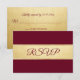 Tarjetas de respuesta de boda elegantes y modernas con foil dorado y burgundy marsala granate. Plantillas editables: agregue su texto. Contacte al diseñador para otras variaciones. Se encuentra en la colección de bodas 'FALL IN LOVE - Burgundy'.
