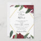 Invitación de BODA | Elegante Borgoña rica Marsala Floral Rodea esta forma geométrica de diamante de borde dorado con todos los detalles de su boda en el interior - una combinación de escritura casual manuscrita y escritura formal serif le da un aspecto elegante de moda. La parte posterior es un burdeos oscuro y sólido recogido de los Rosas (se puede cambiar fácilmente eligiendo una opción más personalizar).
