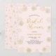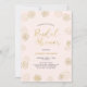 Celebre su día especial con esta invitación moderna para una ducha de novia. Este diseño presenta tipografía elegante y patrones de diente de león en textura de oro falso sobre un fondo rosa claro. Más invitaciones para duchas de novia y suministros para fiestas están disponibles en mi tienda BaraBomWedding.