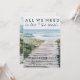 Playa de arena blanca totalmente personalizable Nantucket con invitación boda de pasarela de madera e invitación a la recepción con el mensaje "Todo lo que necesitas es amor y playa". Se puede personalizar con su ubicación de bodas en la playa tropical, nombres y fecha de boda. Los detalles de la recepción están impresos en el reverso. Para obtener más personalizar, seleccione el botón personalizar en el que puede cambiar los estilos de fuente, el tamaño y el color de tinta.