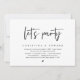 Moderna carta de invitación a la salida del boda con temática blanca y negra (vamos fiesta). Es perfecto para su fiesta de recepción de boda/celebración post boda. Añade tus detalles en letras o letras negras coincidentes.