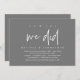 Marque el comienzo de su eternidad con elegancia usando nuestra contemporánea tarjeta de invitación a la celebración del boda con temática gris oscuro, "Oh Yes we did". Perfecto para las parejas que ofrecen su alegre ocasión, esta invitación exuda sofisticación con un toque de alegría, sentando el escenario para un evento memorable. Adornado con un tema de diseño de guiones modernos y atemporales, le da un toque de encanto refinado a sus festividades. Diseñada por TeeshaDerrick, esta invitación promete capturar maravillosamente tu historia de amor.