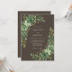 Este diseño presenta un rico fondo marrón oscuro que sirve como un lienzo dramático para una exuberante vegetación de acuarela. Flores verdes esmeralda y salvia se acentúan con delicadas ramas frondosas y pequeños brotes dorados. La estética melancólica del bosque crea una atmósfera sofisticada perfecta para un evento terrenal.