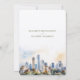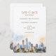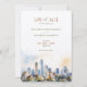 Captura la esencia de tu próxima boda en Dallas con esta exquisita invitación de Save-the-Date, que presenta una suave representación en acuarela del icónico skyline de Dallas. La invitación combina tipografía elegante con una soñadora paleta pastel de azules, dorados cálidos y blancos suaves, que recuerda a un amanecer en Texas. La Torre Reunion y el paisaje urbano proporcionan un telón de fondo romántico, preparando el escenario para tu día especial. Esta invitación es perfecta para parejas que buscan una mezcla de sofisticación urbana y estilo artístico.