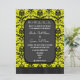 El elegante damasco negro y amarillo brillante invita a una boda tradicional, en un fondo retro barroco alrededor de un fondo gris, personaliza fácilmente los nombres de novias y novios en las plantillas de texto para crear una invitación personalizado única para sus especiales y románticas ocasiones y celebraciones temáticas vintage. Visite la TIENDA PERSONALIZED_BODAS para obtener conjuntos de suites boda coordinados. Se puede personalizar fácilmente para otras ocasiones especiales y celebraciones.