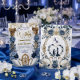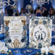 Invitación Boda en el Jardín Botánico de Azul Polvo y Azul Ma