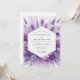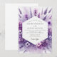 Experimenta una atmósfera romántica con este diseño de acuarela etérea. Suaves lavados de lavanda, lila y violeta profundo crean una escena floral soñadora. Ramilletes de lavanda florecida y delicadas flores silvestres brotan de los bordes, evocando el encanto de un prado soleado. Esta disposición artística es perfecta para una unión de primavera o verano.